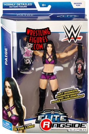 Recentemente pela primeira vez a WWE lançou a Action Figura da EX-Divas Champion Paige.Paige fara parte da coleção Mattel Elite 34.Junto com a Action Figure da Paige virá o Divas Title e o NXT Women's title incluso.Além de Paige outras Action-Figures anunciadas são : Hulk Hogan, Rusev, John Cena, Bad News Barrett e Doink the Clown.Clique no "Mais" para ver as imagens da Action-Figure.